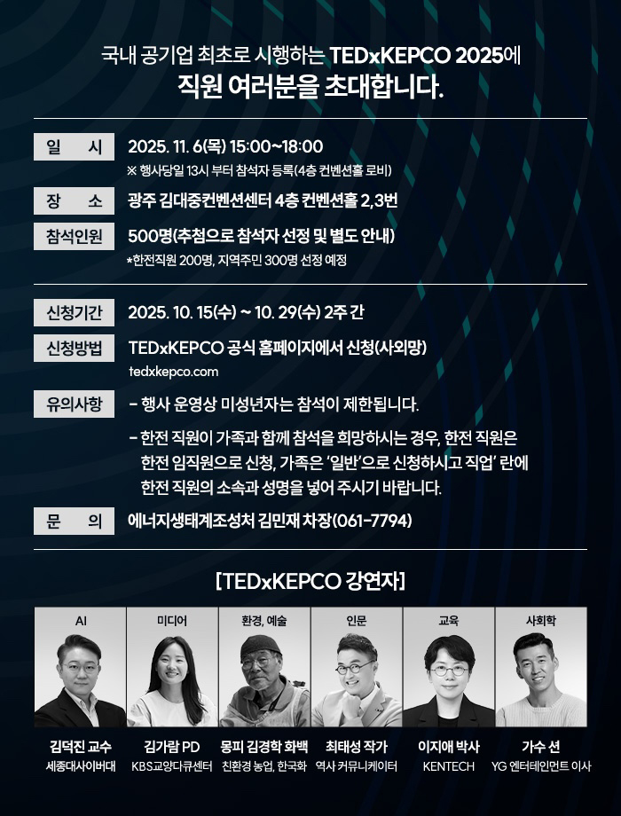 [한국전력공사] TEDxKEPCO 사전등록 안내(~10.29)
